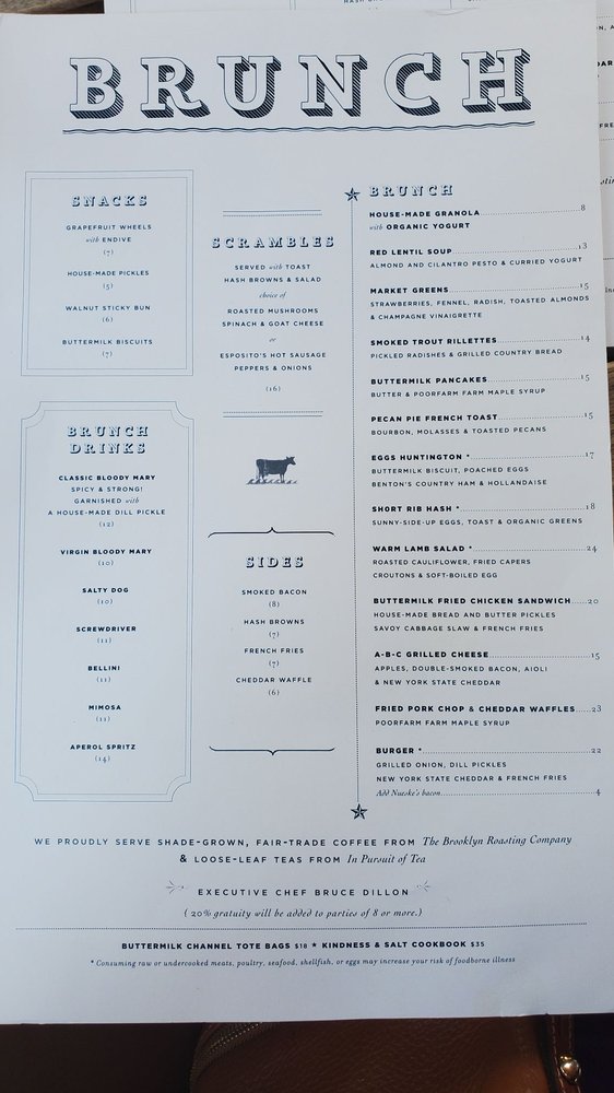 Introducing Buttermilk Channel, a buzzing restaurant in Brooklyn offering a parade of comfort food options. Located at 524 Court St, this establishment takes reservations, offers delivery and takeout, and provides vegan and vegetarian choices. Customers rave about the delicious cocktails, friendly service, and cozy ambience. Standout dishes include the signature Chicken & Cheddar Waffles with a crunchy fried chicken that packs a flavorful punch. The intimate and comfortable setting, along with attentive waitstaff, make for a memorable dining experience. Make sure to make a reservation for brunch, as this popular spot fills up quickly. Buttermilk Channel is a must-visit for a fulfilling meal with friends or family.